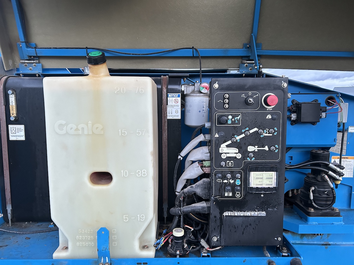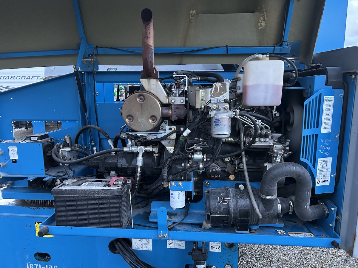 Located in Wisconsin, this 2015 Genie S45 boom lift offers a 51′ working height and 45′ platform height, powered by a diesel Perkins engine with 4WD for all-terrain mobility. With 3,507 hours, it’s rental-ready and equipped with air tires, a jib, and a cold weather package for extended seasonal use. The platform provides safe, elevated access for construction, maintenance, and installation tasks, while the 4WD drive and durable components handle rough job site conditions efficiently.
