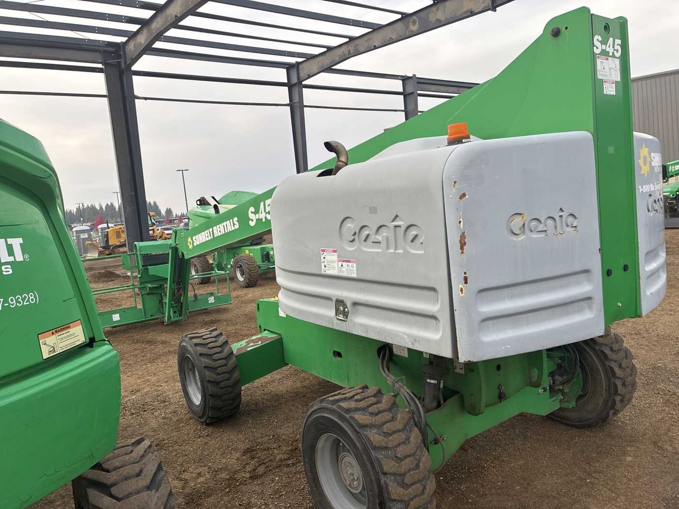 Located in Washington State, this 2016 Genie S45 telescopic boom lift delivers a 51′ working height, 45′ platform height, and 36′ horizontal reach with 4WD for access across rough terrain. With 3,121 hours, it is rental-ready and powered by a Deutz diesel engine. Foam tires reduce puncture downtime, and the jib allows precise positioning when working around steel, piping, or structural obstacles at height.