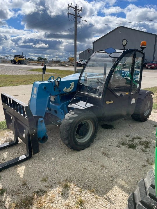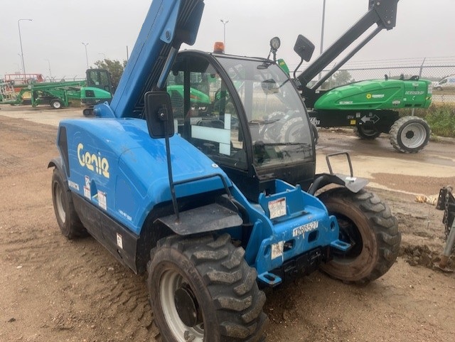 Located in Sioux Falls, SD, this 2017 Genie GTH-5519 telehandler delivers a 5,500 lb lift capacity and 19′ reach for efficient material handling in confined or indoor spaces. Powered by a diesel engine and equipped with 4WD, it performs well on uneven terrain. The enclosed cab with heat and oil pan heater supports year-round operation. With 4,395 hours and air tires, it’s rental ready and suited for loading, lifting, and site support work.